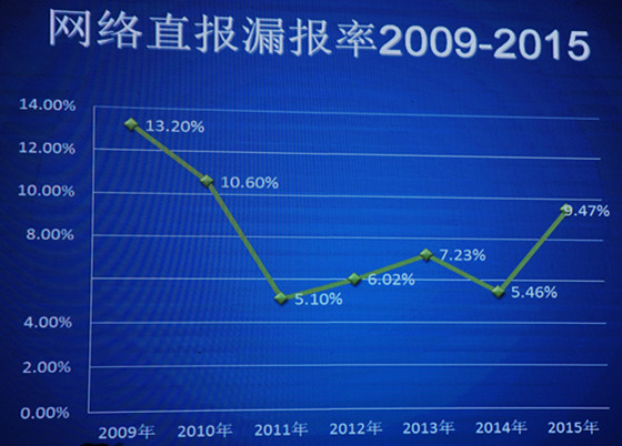 2009~2015年网络直报漏报率与国家质控管理密切相关,2009年至2011年漏报率显著下降,但2012年至2015年逐渐增加,2015年为9.47%(见图9)。这说明质控管理的有效推进不是一家医院可以完善的,需要各方力量的支持,通过质控中心来管理核实网报数据的真实性是目前能够选择最好、最可靠的方式。