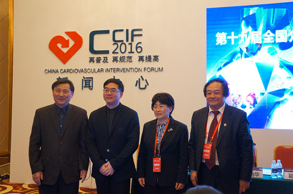 2015年4月23日,第十九届全国介入心脏病学论坛(CCIF)最吸引广大心血管介入医师和媒体的新闻发布会——2015年全国冠心病介入治疗数据通报新闻发布会上,中华医学会心血管病学分会前任主任委员、北京大学第一医院霍勇教授通报,2015年我国冠心病介入治疗网络直报例数467 898例(截止时间2016年1月31日24时),省级疾控中心核实数据53 741例,军队医院数据45 944例,总例数达到567 583例。韩雅玲院士、葛均波院士、傅向华教授共同出席。
