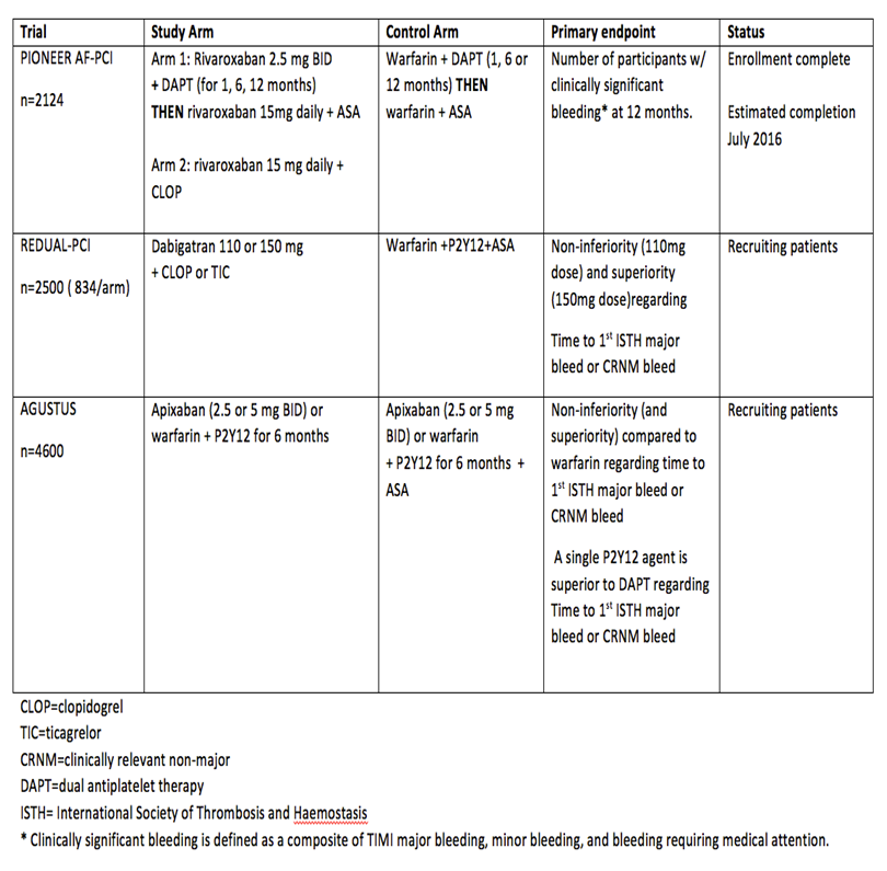 不论大出血还是轻微出血,都是临床面对的棘手问题,因为患者因此需要停止治疗,不仅是抗栓治疗,还有可能是ACE抑制剂、他汀以及其他所有救命治疗策略的终止,出血本身似乎已成为介入医师需要去面对的终极问题。这些临床上两难的情况再次提示,针对那些房颤或需要口服抗凝制剂治疗同时需要进行PCI手术的患者,出血是必须考虑的重要因素。