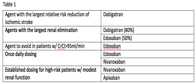 使用意向治疗或per protocol方法下的所有NOACs都显示出同等或优于华法林的结果,相较华法林,所有NOACs显著降低出血性卒中发生率。因此,各新型口服抗凝剂在这些方面的数据并无差异。