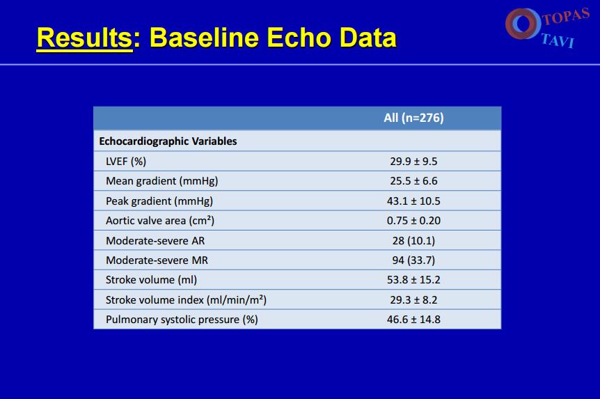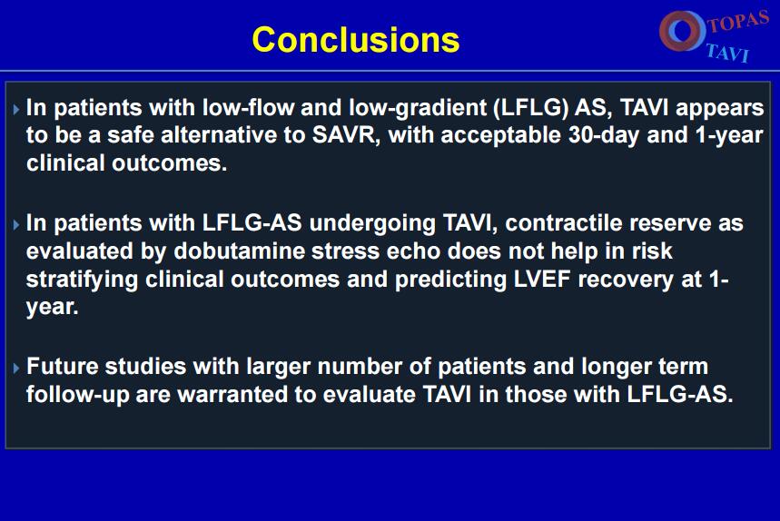 TCT2016 | TOPAS-TAVI试验:低流量低梯度主动脉瓣狭窄患者TAVR术可行