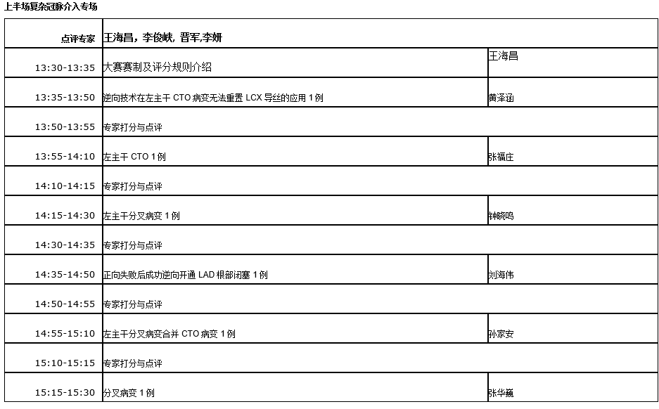 “实战王”杯冠脉介入治疗病例大赛日程安排