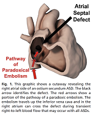 图2 房间隔缺损与反常栓塞