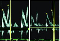 图1 AV间期优化前后的二尖瓣血流频谱图