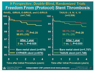很明显,这个研究结果完全不同于WCC2006会议上公布的荟萃分析结果。Stone医生指出,之所以有如此大的差别,是因为Camenzind和Nordmnn医生的研究中存在着不少缺陷,例如入选了随访时限不同的研究,各个时间段随访患者的数量不详,更为重要的这两个荟萃分析中有些数据不是建立在患者水平上,而是单纯来源于已发表论文的数据。