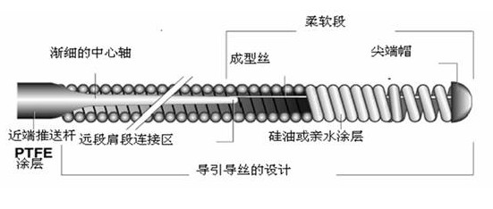 导丝的推送力指导丝在术者操纵体外推送杆作用下通过病变的能力。取决于核心钢丝的硬度(直径)以及过渡段的设计方式。核心钢丝越粗,过渡段呈平缓的锥型,推送力的传导较为均匀,较阶梯型过渡段的设计更容易通过扭曲和成角的血管病变。柔软、推送力差的导丝,因其尖端柔软,运动容易受阻,不易发生血管穿孔,操作比较安全。而推送力强、尖端较硬的导丝容易造成血管夹层或穿孔。