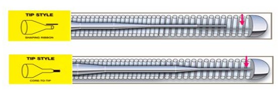 不同的尖端设计,决定尖端的操控性和柔韧性,以应对各种不同的病变。目前PCI常用导引导丝的尖端设计主要分为两类(图2):