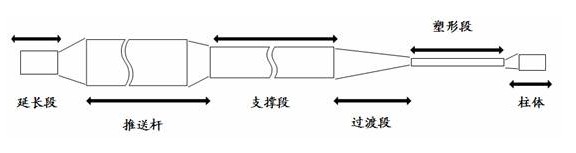 核心钢丝决定了导丝的主要性能特征——导丝的支持力、头部的硬度、导丝走向的可控性及其扭矩的传送能力。它由塑形段、过渡段(锥形渐细)和支撑段(工作区)3部分组成(图4)。