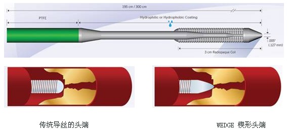 如严重钙化、扭曲、成角的病变血管,要求导丝具有柔软的头端和更好的支持力,以便拉伸血管输送体积较大的治疗装置如切割球囊或较硬、较长的支架到达病变处。