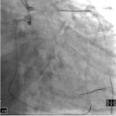 7) 准备长(150cm)球囊和1.25mm 球囊(有时侧枝循环需要预扩)